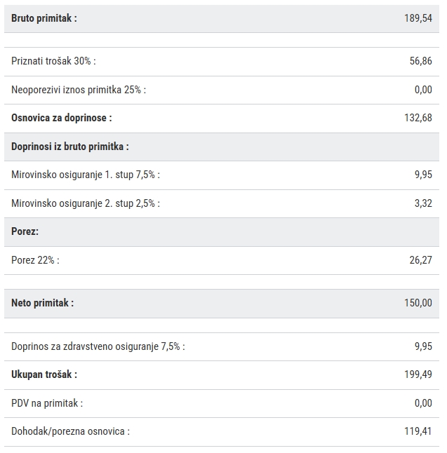 Prema trenutno važećim propisima izračun troškova za do 1.000 guma (neto primitak od 150,00 €) bio bi sljedeći: